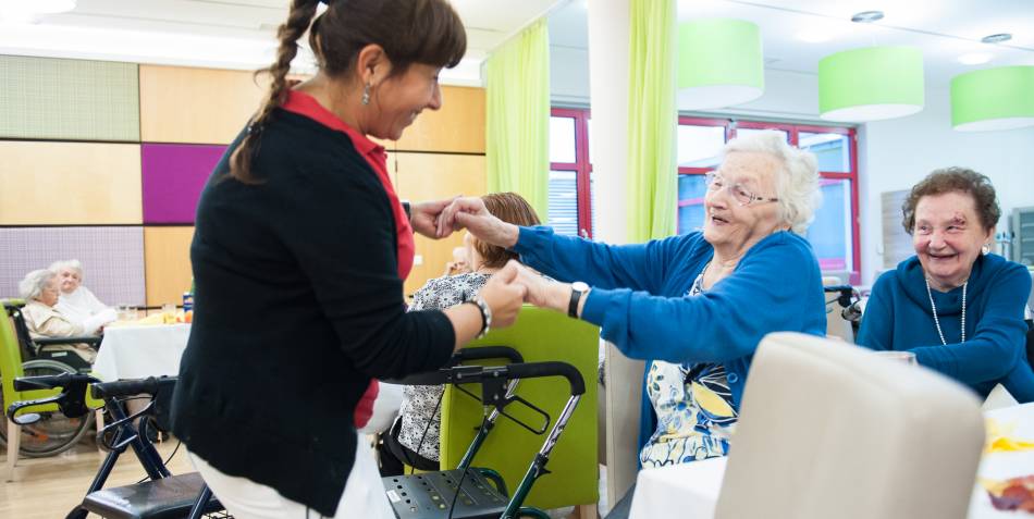 Genauso rückt aber auch das Erleben der Mitarbeiter*innen in den Blickpunkt. Zwischen beiden Welten besteht eine Wechselwirkung, die für die Gestaltung positiver Beziehungen zwischen Bewohner*innen und Mitarbeiter*innen genutzt wird. So gestalten wir – Bewohner*innen, Angehörige und Mitarbeiter*innen – gemeinsam ein familiäres Umfeld, in dem Leben und Arbeiten in Geborgenheit und Zufriedenheit möglich ist.