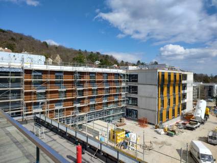 Bis Mitte des Sommers wird alles für den Neubau vorbereitet. Von insgesamt 152 Pflegeplätzen sind 12 Plätze hospizlicher Begleitung vorenthalten. Ein Tageszentrum für Senioren und Seniorinnen rundet das Angebot ab. Großzügige Terassen- und Gartenflächen, ein gemütliches Café und der offene Mittagstisch für Bewohner:innen, Besucher:innen und für die Nachbarschaft laden zum gemeinsamen Zeitverbringen ein.