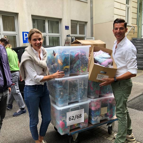 VIELEN DANK an die Geschäftsführerin von BABAUBA, Antonia Stubenberg, und dem BABAUBA-Team, die zur Überraschung aller sogar persönlich diese Spende mit dem Bus brachten und sichtlich Freude hatten, als sie die erfreuten Gesichter unserer Mitarbeiter sahen! „Wir von BABAUBA freuen uns, wenn wir mit unserer Spende ein wenig von den Sorgen und Lasten der Mütter und deren Kinder im CS Haus für Mutter und Kind nehmen können. Gerade in Zeiten wie diesen, ist dies besonders wichtig!“, so Antonia Stubenberg. Bereichsleiter des CS Wohnhauses für Mutter und Kind, Human Vahdani: „Wir freuen uns enorm über diese großzügige Spende und ich bin überzeugt, dass sich jedes Kind in den nächsten Tagen sehr freuen wird, wenn wir mit den auffallend bunten Mustermixen auftauchen werden. Vielen Dank an das gesamte BABAUBA-Team!“