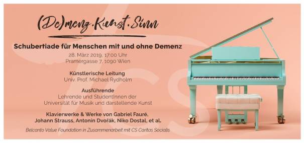Am 28. März 2019 findet erstmals die „Schubertiade – für Menschen mit und ohne Demenz“ in der CS Pramergasse statt. Unter dem Titel „(De)menz. Kunst. Sinn“ veranstaltet die CS Caritas seit Jahren Kunstprojekte für Menschen mit und ohne Demenz.