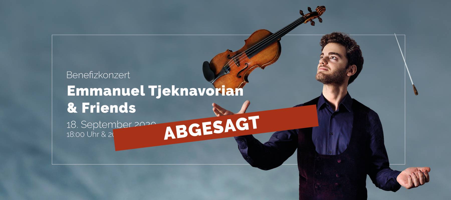 Aufgrund der massiv steigenden Infektionszahlen wird trotz besonderer Hygiene-Vosichtsmaßnahmen das Benefizkonzert mit Stargeiger Emanuel Tjaknavorian & Friends zugunsten des CS Hospiz Rennweg vom 18.9.2020 abgesagt. Wir nehmen unseren Auftrag "weil jeder Augenblick zählt" ernst und mit derselben Achtsamkeit wie wir mit unseren Klient*innen umgehen, gehen wir auch an diese Benefizveranstaltung heran. Auch wenn das Konzert unter aktuellen Veranstaltungs-Regelungen stattfinden dürfte - sagen wir zu unser aller Sicherheit und Gesundheit das Konzert ab und hoffen auf ein gesundes Wiedersehen im Jahr 2021! Wir entschuldigen uns für etwaige Unannehmlichkeiten,hoffen auf Ihr Verständnis und wünschen Ihnen alles Gute!