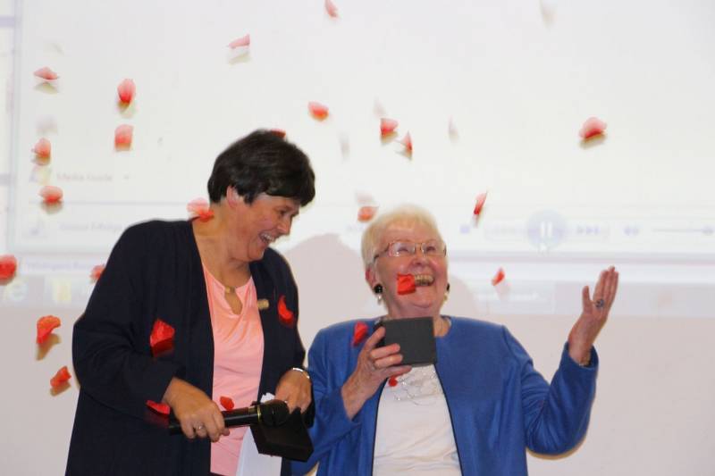 Hildegard Burjan Ehrenpreis für Prof. Ingeborg Schödl inklusive Rosenregen.