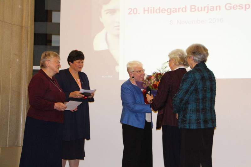 Unter dem Motto „Hildegard Burjan: Impulsgeberin gestern – heute – morgen“ fand am 8.11.2016 zum 20. Mal das Hildegard Burjan Gespräch statt, veranstaltet von Schwesterngemeinschaft Caritas Socialis und Hildegard Burjan Forum. Generalleiterin Sr. Susanne Krendelsberger CS ehrte Prof. Ingeborg Schödl für ihr langjähriges Engagement für die Bekanntmachung der Gründerin der Caritas Socialis Hildegard Burjan mit dem gleichnamigen Ehrenpreis.