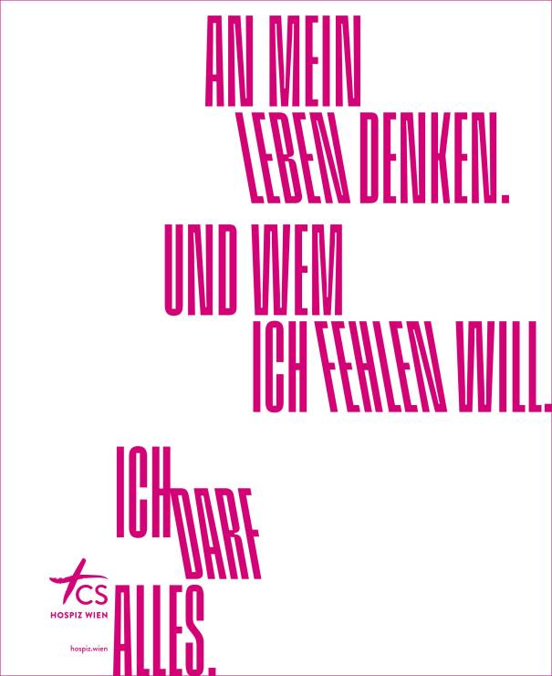 In der Tradition der Allerheiligen/Allerseeelenkampagne-Kooperation zwischen Der STANDARD und dem CS Hospiz Rennweg erscheint das aktuelle Sujet der Kampagne “Ich darf alles“. Gemeinsam mit der Kreativagentur NIKELS setzt CS Hospiz Wien diesmal auf eine mutige, farbenfrohe und lebensbejahende Kampagne, die eines klar macht: Selbstbestimmung ist auch am Ende des Lebens möglich.