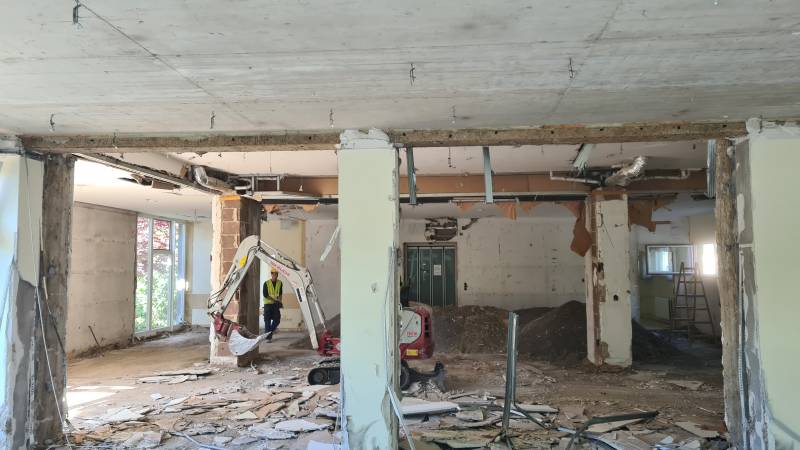 Mit einem Bagger, schweren Maschinen und vielen LKWs, um den Schutt zu beseitigen, wurde heute der nächste Schritt eingeleitet - der Abbruch.