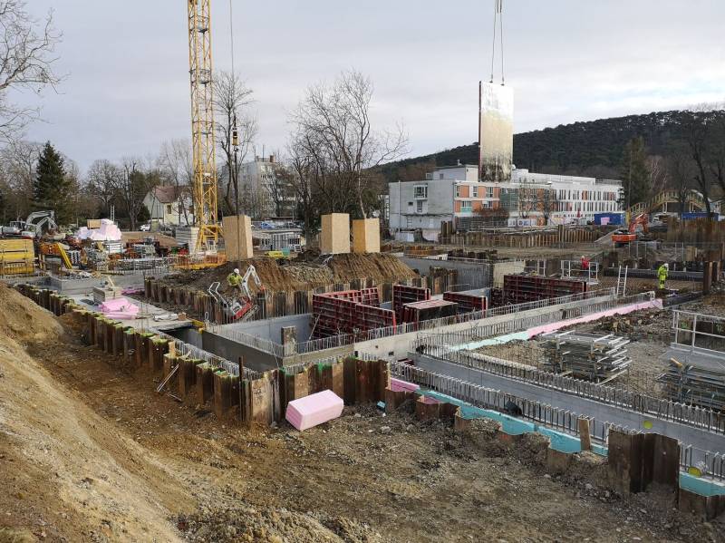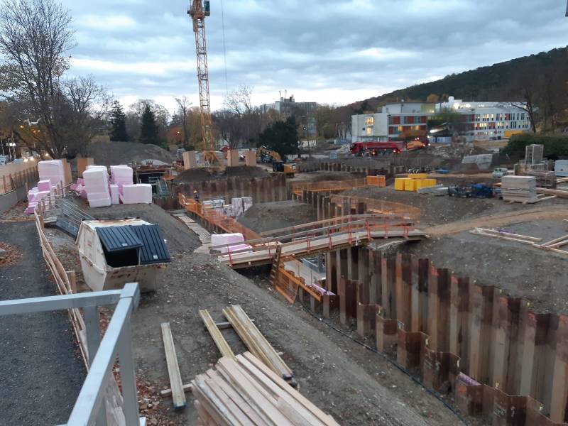 Aufgrund von dringend erforderlicher Bauarbeiten, wie der Baugrubensicherung (dh. ziehen der Spundwände und Herstellung der Duktilen Pfähle), kann es bis einschließlich 28.1.2022 zu erhöhtem Baulärm kommen. Wir bitten um Verständnis.