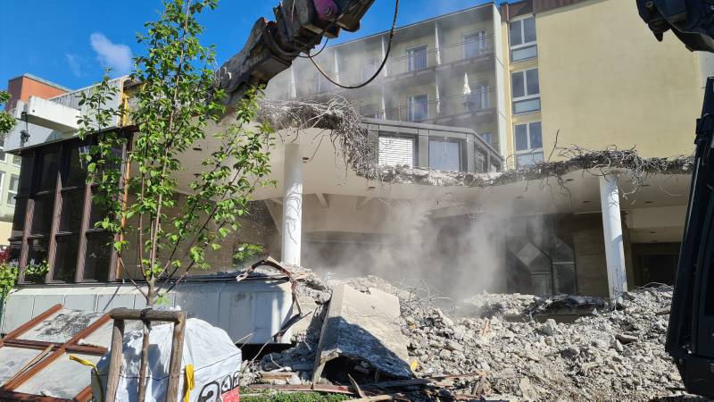 Mit einem Bagger, schweren Maschinen und vielen LKWs, um den Schutt zu beseitigen, wurde heute der nächste Schritt eingeleitet - der Abbruch.