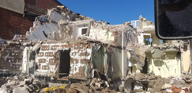 Mit einem Bagger, schweren Maschinen und vielen LKWs, um den Schutt zu beseitigen, wurde heute der nächste Schritt eingeleitet - der Abbruch.