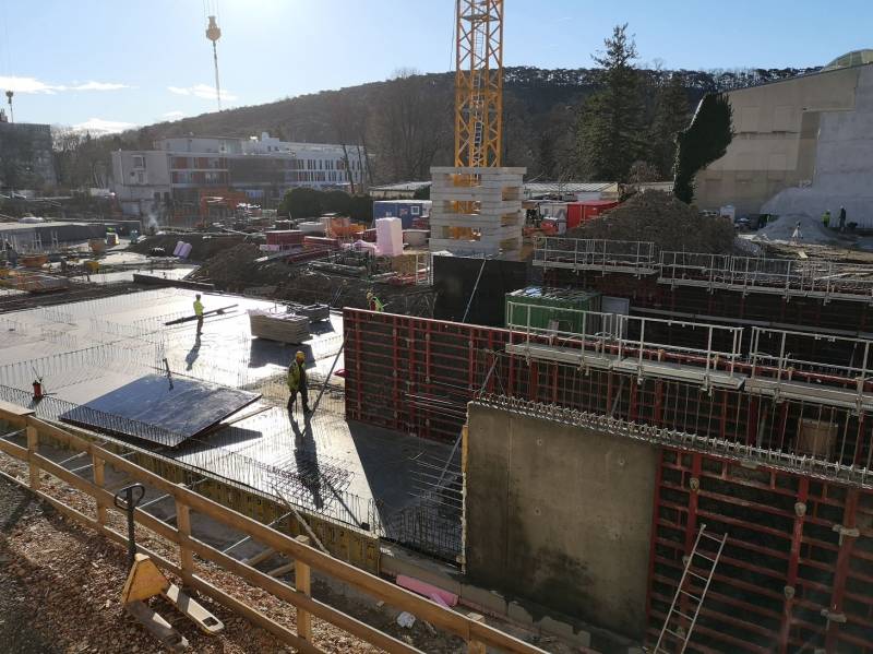Kaum zu glauben, denn noch vor wenigen Monaten war eine große Grube am Areal der neuen CS Kalksburg zu sehen. Damals war es noch schwer vorstellbar, dass auf diesem Areal schon 2023 ein neues Pflegezentrum stehen soll. Doch bereits sechs Monate nach Baubeginn sind die beiden Untergeschoße beinahe fertig betoniert und die Vorbereitungen für die Herstellung des Erdgeschoßes laufen.