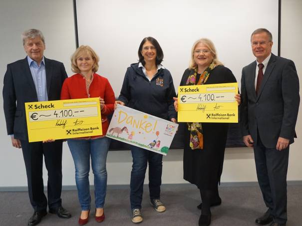 Am 20.12.2022 überreichten Vorstandsvorsitzender Dr. Johann Strobl (CEO der Raiffeisenbank International) und Mag. Rudolf Kortenhof (Vorsitzender des Betriebsrats, Vorsitzender der Konzernvertretung) an das CS Hospiz Rennweg (Sabina Dirnberger-Meixner) und an den Lichtblickhof je 4100 Euro.