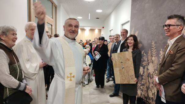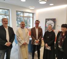 vlnr: Robert Zöchling (Bezirksvorsteherin Stv.), Dechant P. Dr. Arkadiusz Zakręta CM, Klaus Rosino (Geschäftsführer des St. Carolusheims), Sr Christine Daniela Jedinger (Generalleitung der Borromäerinnen), Sr Susanne Krendelsberger CS (Generalleiterin der Schwesterngemeinschaft Caritas Socialis)