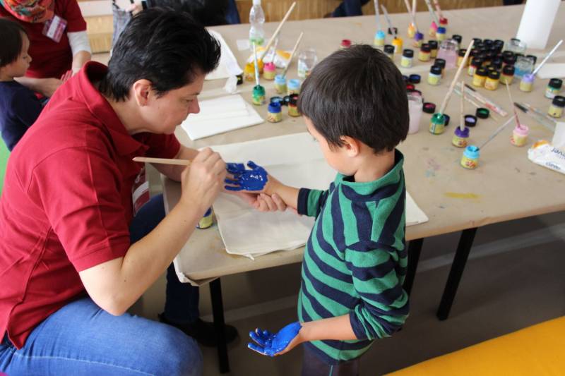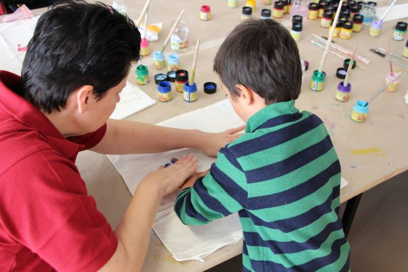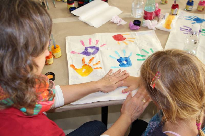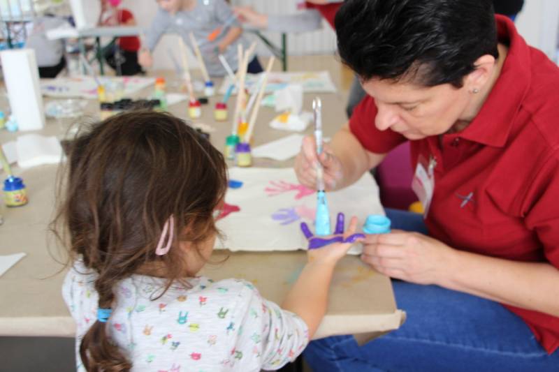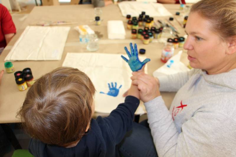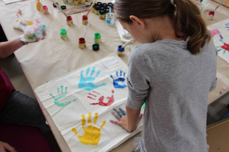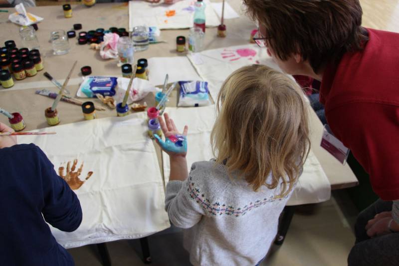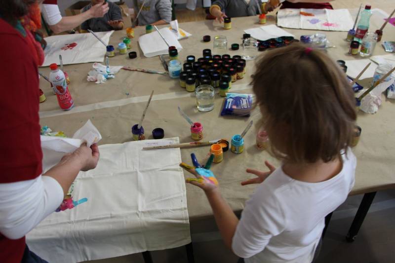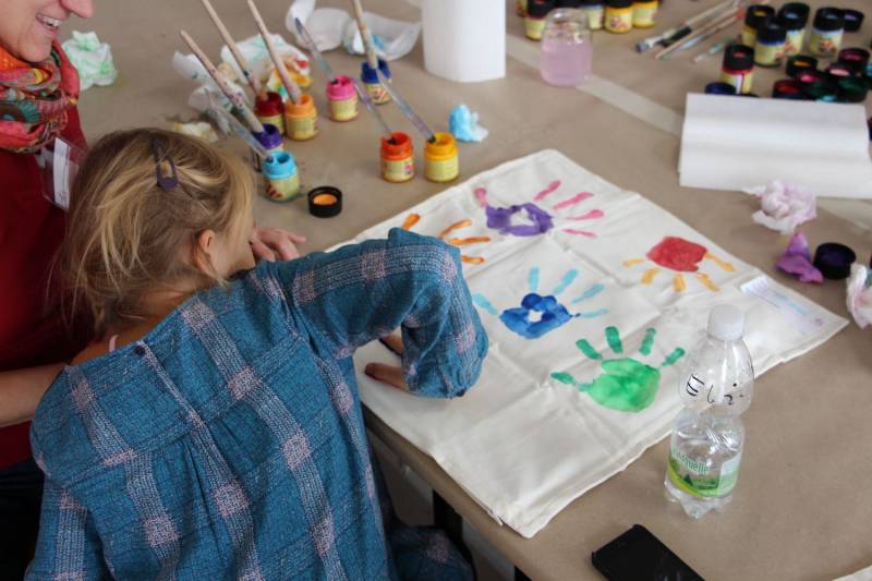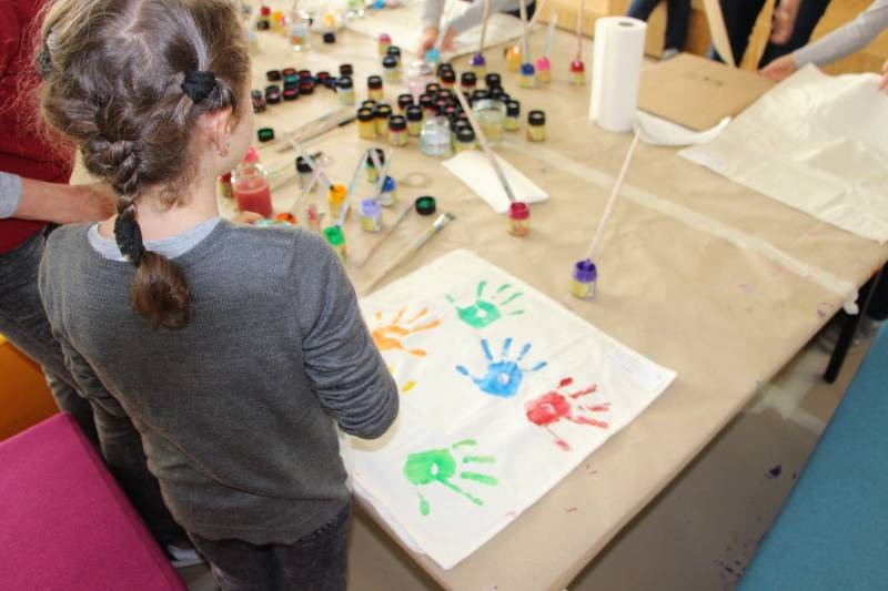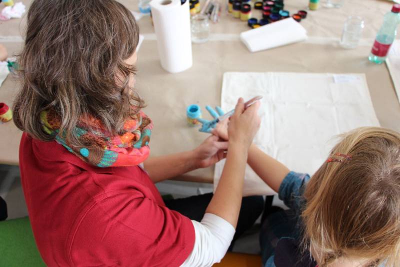 Die Stimmung war großartig. Viele Kinder nahmen mit ihren Eltern an der Aktion teil und freuten sich über ihren ganz individuell gestalteten Polster.