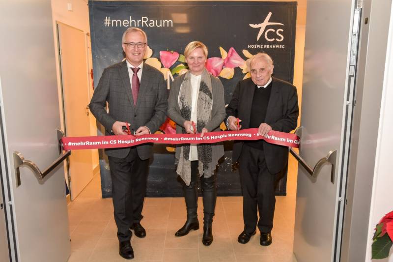 Nach einer intensiven zehnmonatigen Umbauphase nimmt das CS Hospiz Rennweg die Lebensbegleitung bis zuletzt im 3. Wiener Gemeindebezirk wieder auf. Die feierliche Eröffnung mit Stadträtin Sandra Frauenberger und Segnung der neuen Räumlichkeiten mit Weihbischof DDr. Helmut Krätzl fand am 4. Dezember 2017 statt.